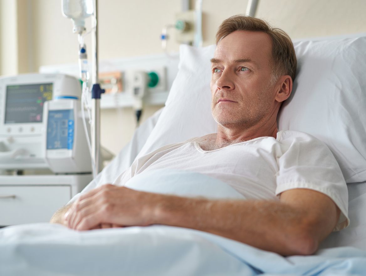 Мужчина средних лет лежит в стационаре