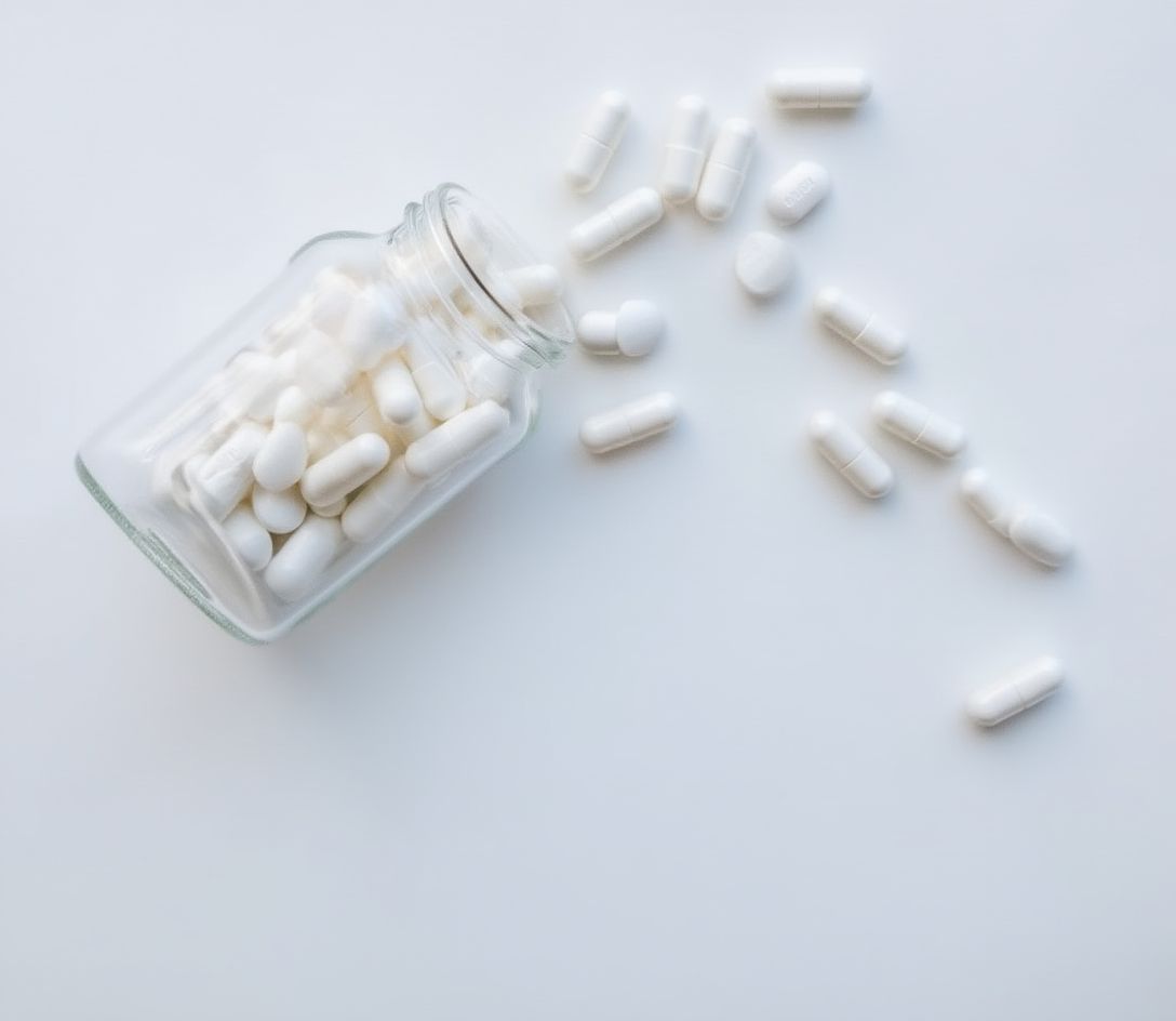 Белые таблетки рассыпанные на столе